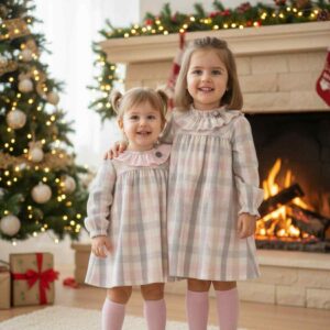 Vestido xadrez com gola Branca